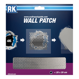 RK Wall Patch is a self-adhesive aluminium sheet with a fibre net for patching holes in a wall. These wall patches have an adhesive surface that makes it easy to place and level. The aluminium in the middle of the fibre mesh restores the strength of the wall almost to its original state.
